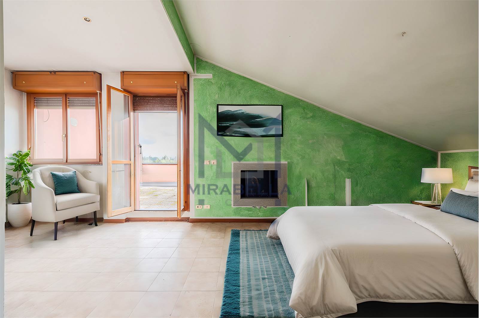 In zona semicentrale, comoda con tutti i servizi, in zona verdeggiante, proponiamo appartamento ultimo piano , su due livelli, con terrazzo panoramico, così composto: ingresso su zona giorno con cucina a vista , uscita sull'ampio balcone, disimpegno, camera matrimoniale e bagno padronale, scala che conduce al quarto piano dove troviamo un locale open-space con camino , secondo bagno e terrazzo panoramico sulle montagne. Al piano interrato cantina e box doppio in larghezza (€ 20.000,00)