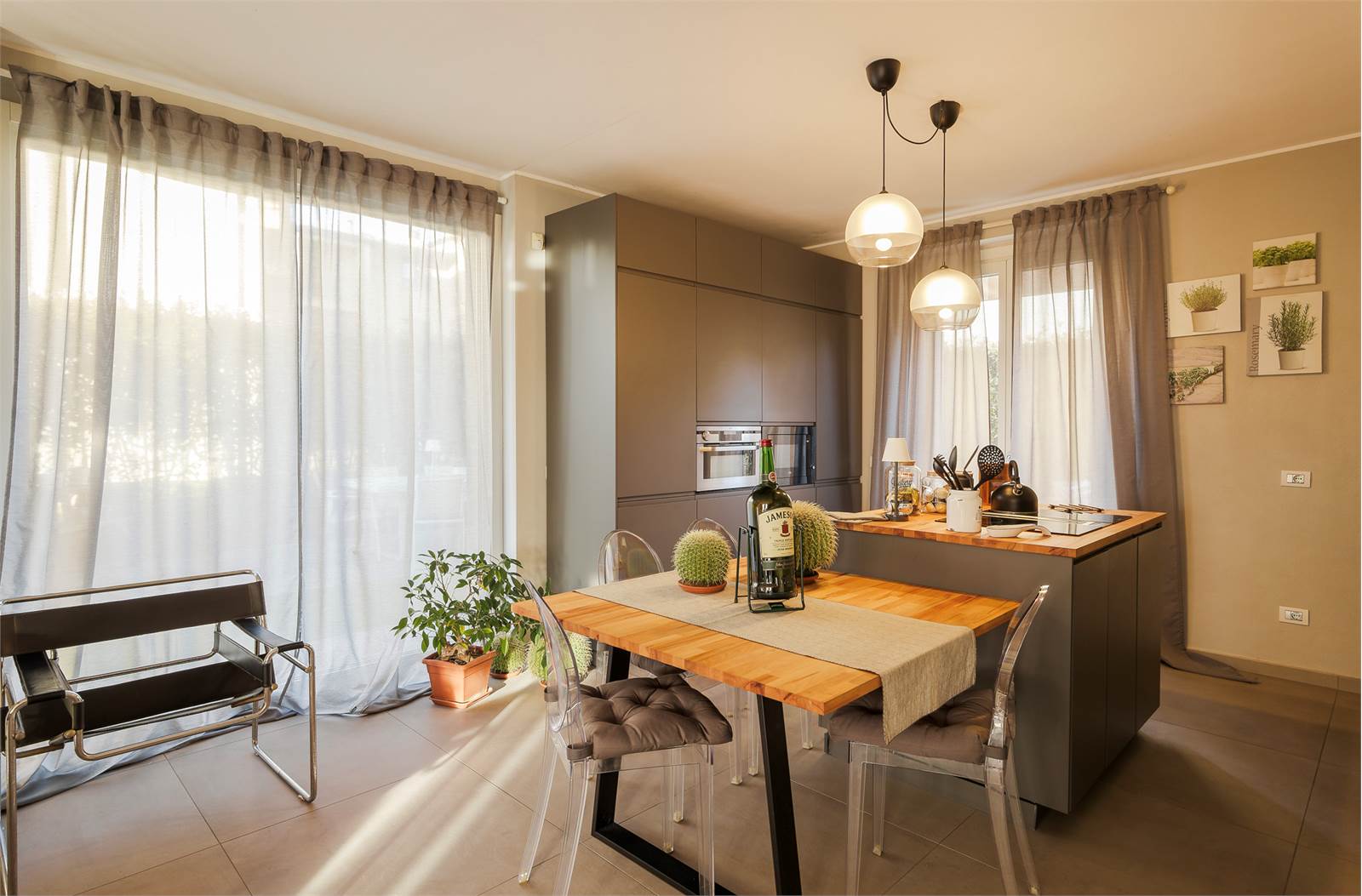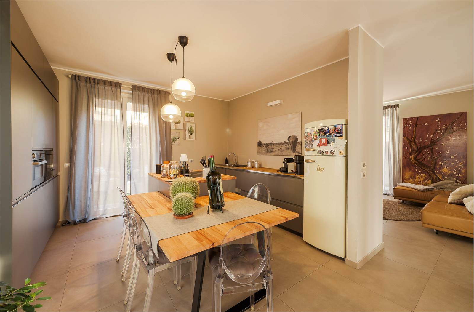 La soluzione si presenta libera su quattro lati, con dehor esterno e giardino privato .
