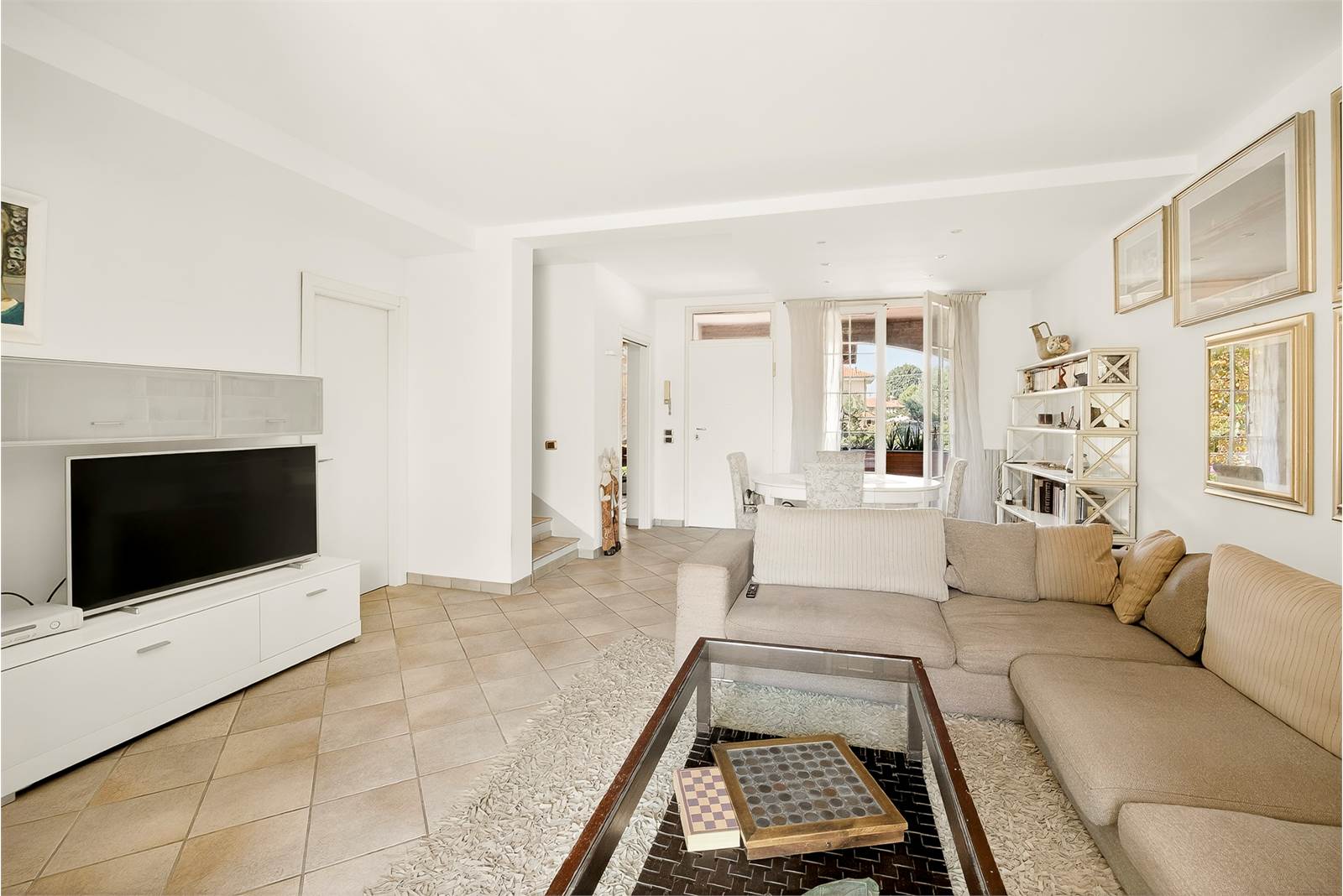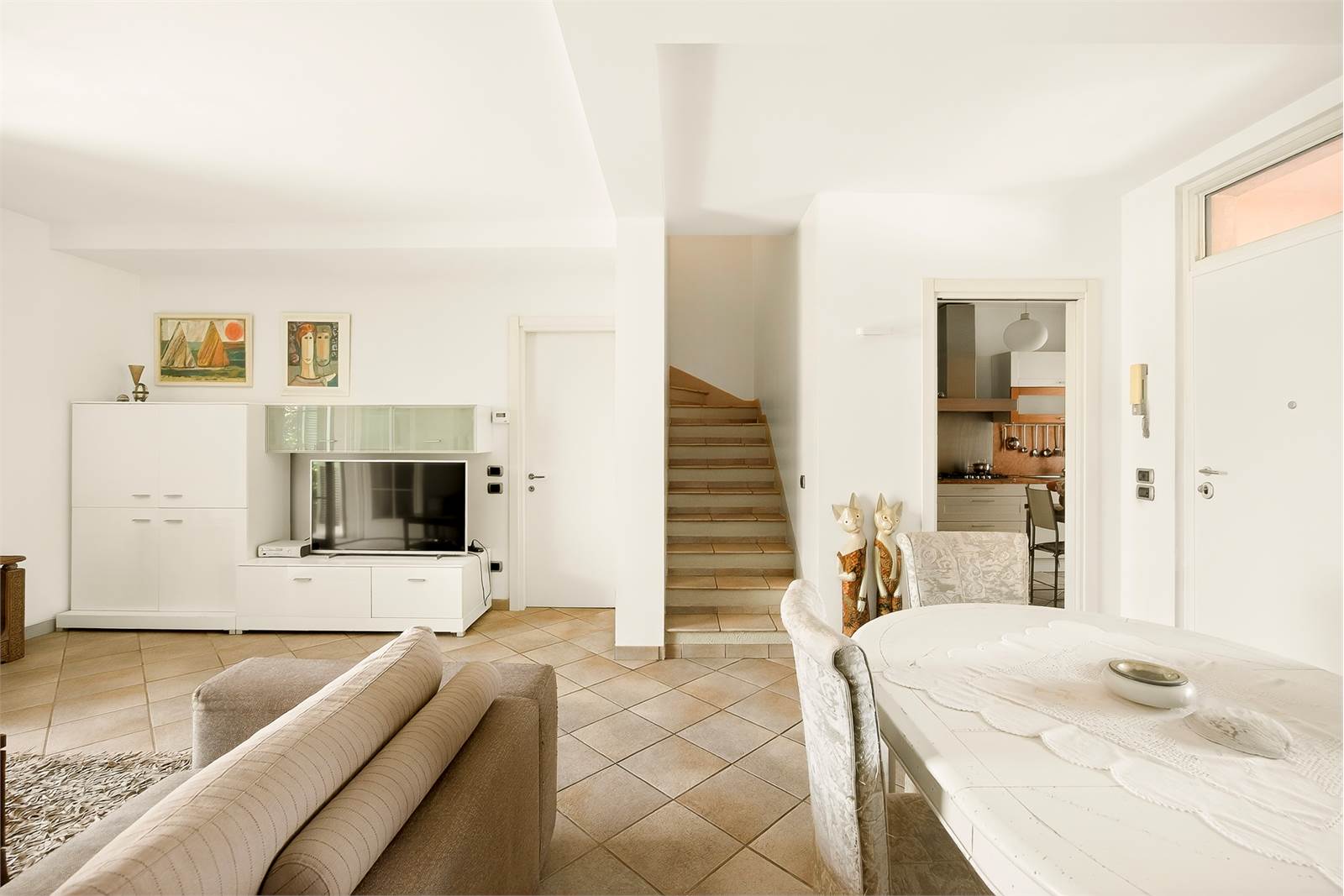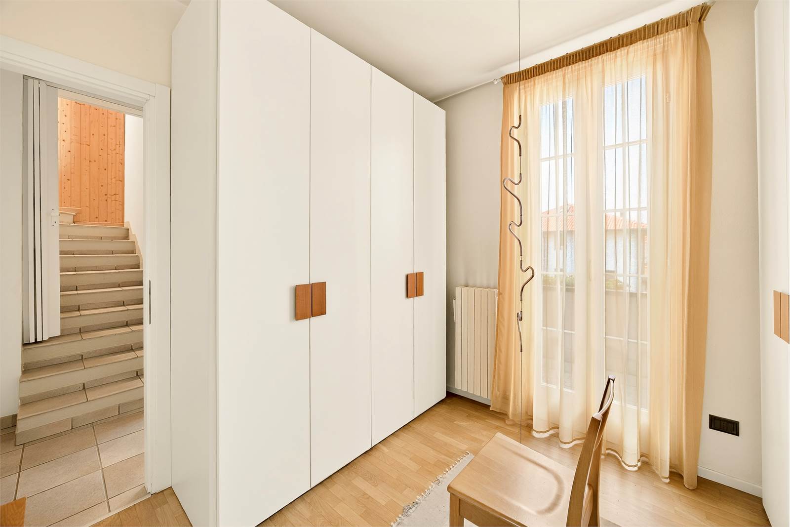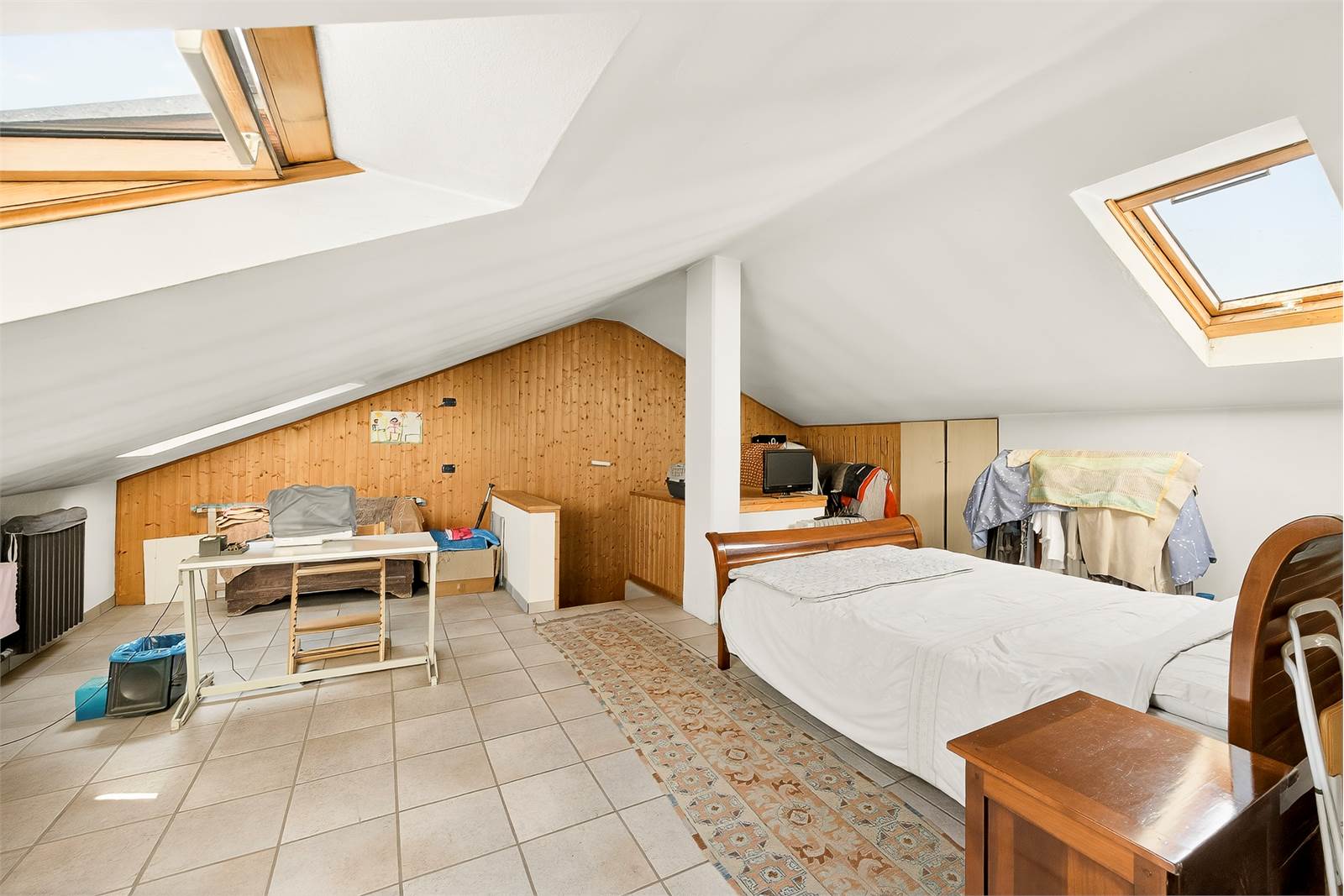 Si accede alla soluzione attraverso il giardino di proprietà ed è così composta: l'ingresso si apre sulla confortevole e luminosa zona giorno (esposta est-ovest) con ampia cucina abitabile completa di portafinestra che dà accesso al giardino ed un comodo bagno finestrato; attraverso la scala interna si accede al primo piano dove troviamo tre camere spaziose (di cui due complete di portafinestra che danno accesso ai rispettivi balconi) ed un ulteriore bagno finestrato, al piano superiore troviamo un ambiente open-space ideale per tutte le necessità, come camera padronale con ampia cabina armadio e bagno privato, come studio o come locale hobby.