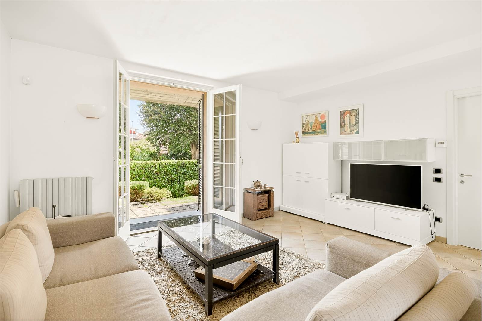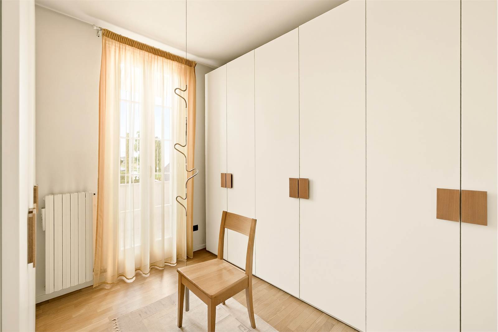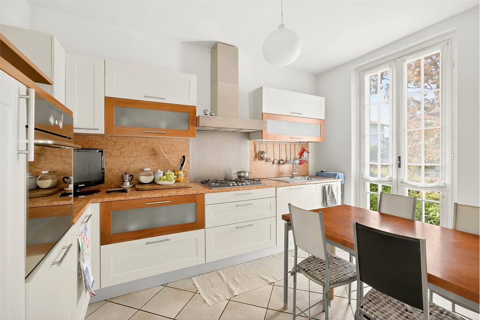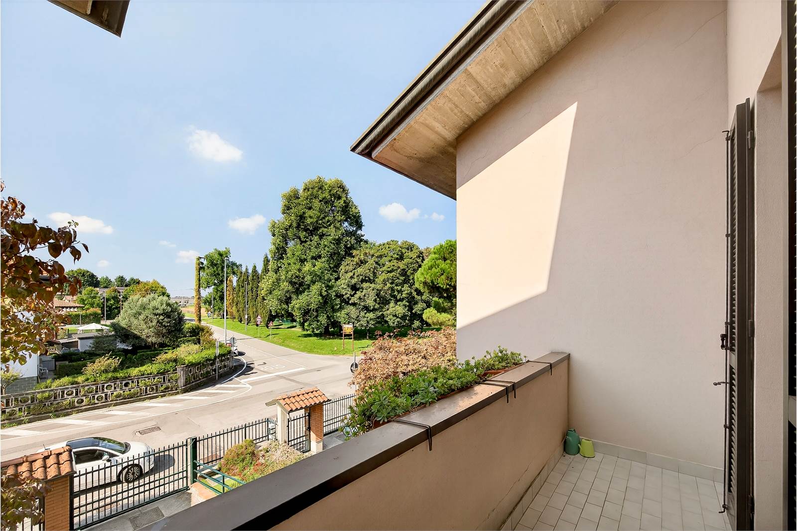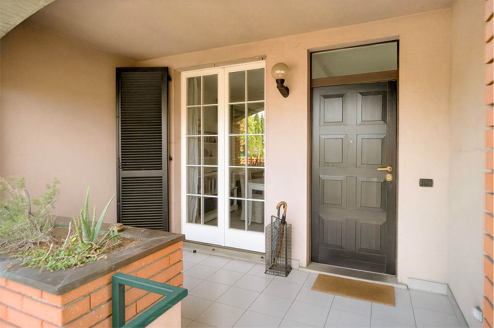 Si accede alla soluzione attraverso il giardino di proprietà ed è così composta: l'ingresso si apre sulla confortevole e luminosa zona giorno (esposta est-ovest) con ampia cucina abitabile completa di portafinestra che dà accesso al giardino ed un comodo bagno finestrato; attraverso la scala interna si accede al primo piano dove troviamo tre camere spaziose (di cui due complete di portafinestra che danno accesso ai rispettivi balconi) ed un ulteriore bagno finestrato, al piano superiore troviamo un ambiente open-space ideale per tutte le necessità, come camera padronale con ampia cabina armadio e bagno privato, come studio o come locale hobby.