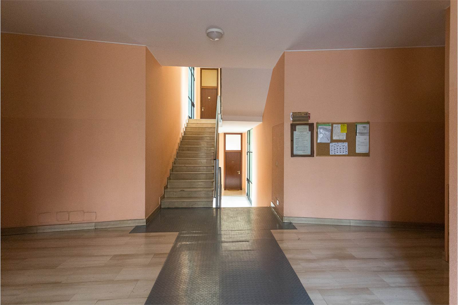 L'appartamento è composto da ampio soggiorno con balcone, cucina abitabile, disimpegno zona notte, camera matrimoniale molto spaziosa con affaccio sul secondo balcone e un bagno completo finestrato.