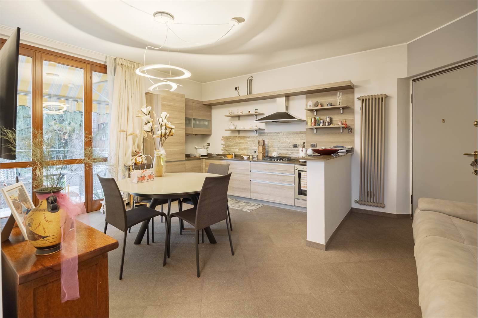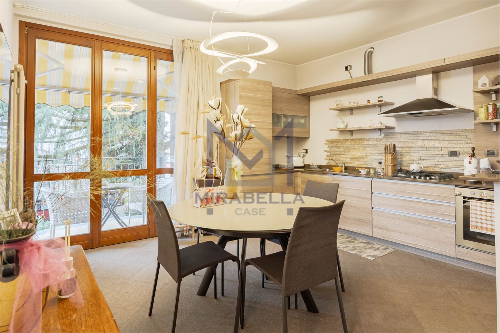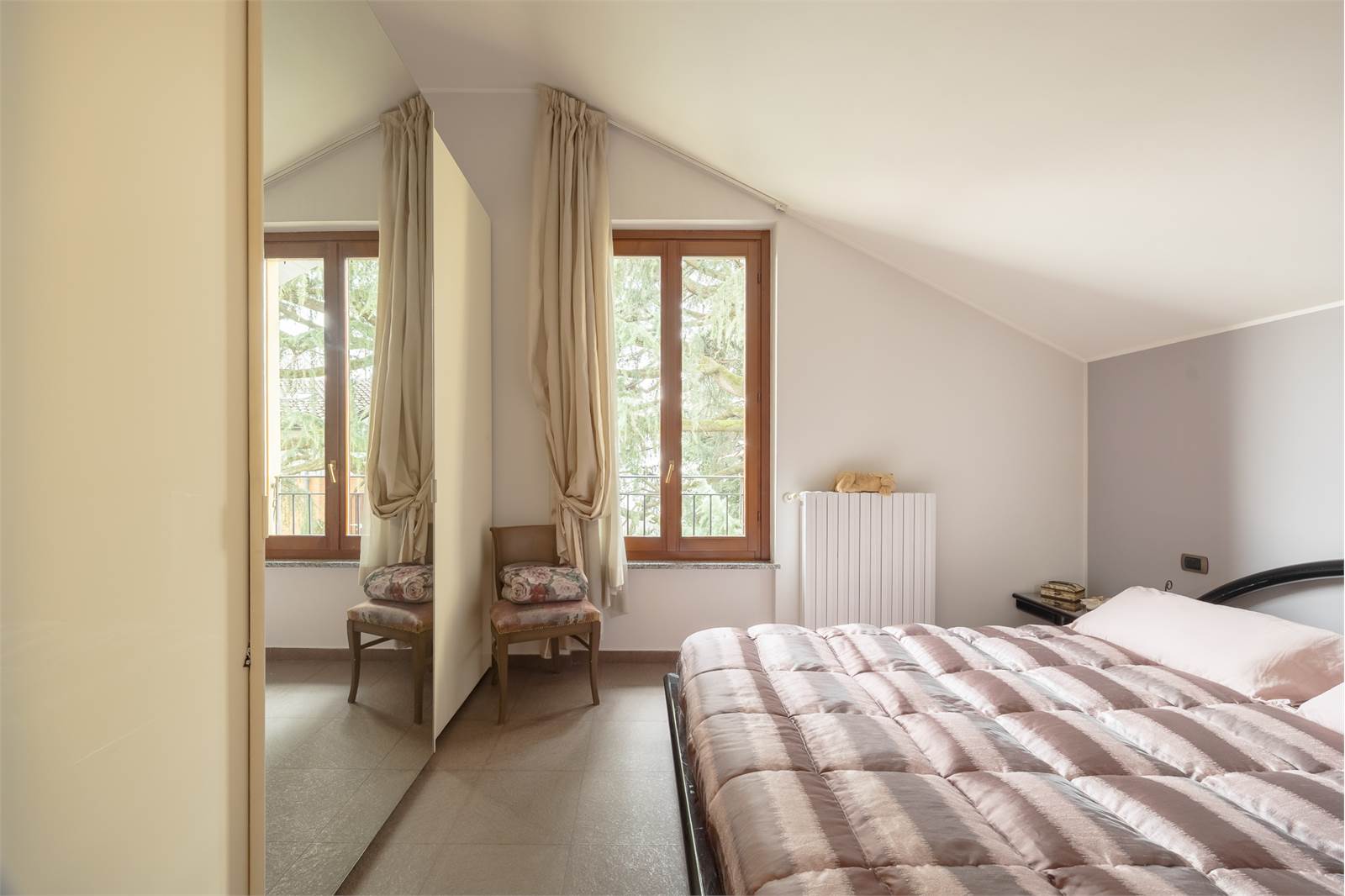 La soluzione si presenta con ottime finiture, infissi in legno con doppio vetro camera, persiane in legno, porta blindata.
