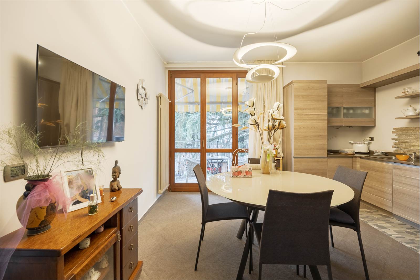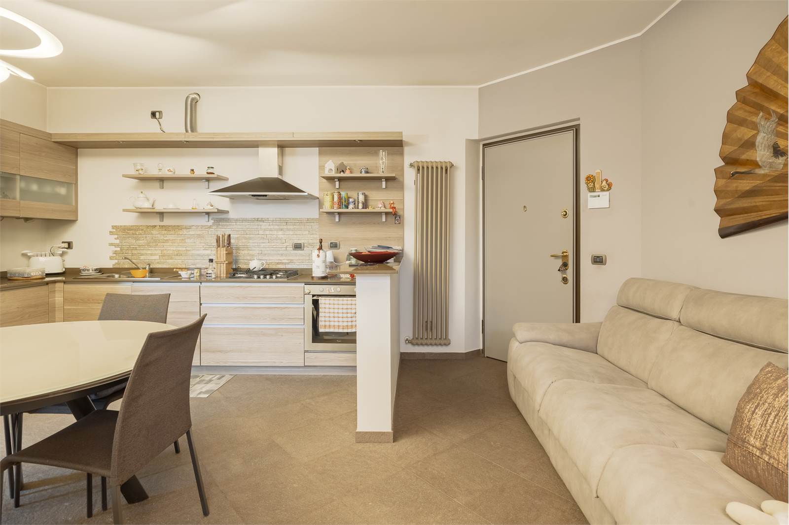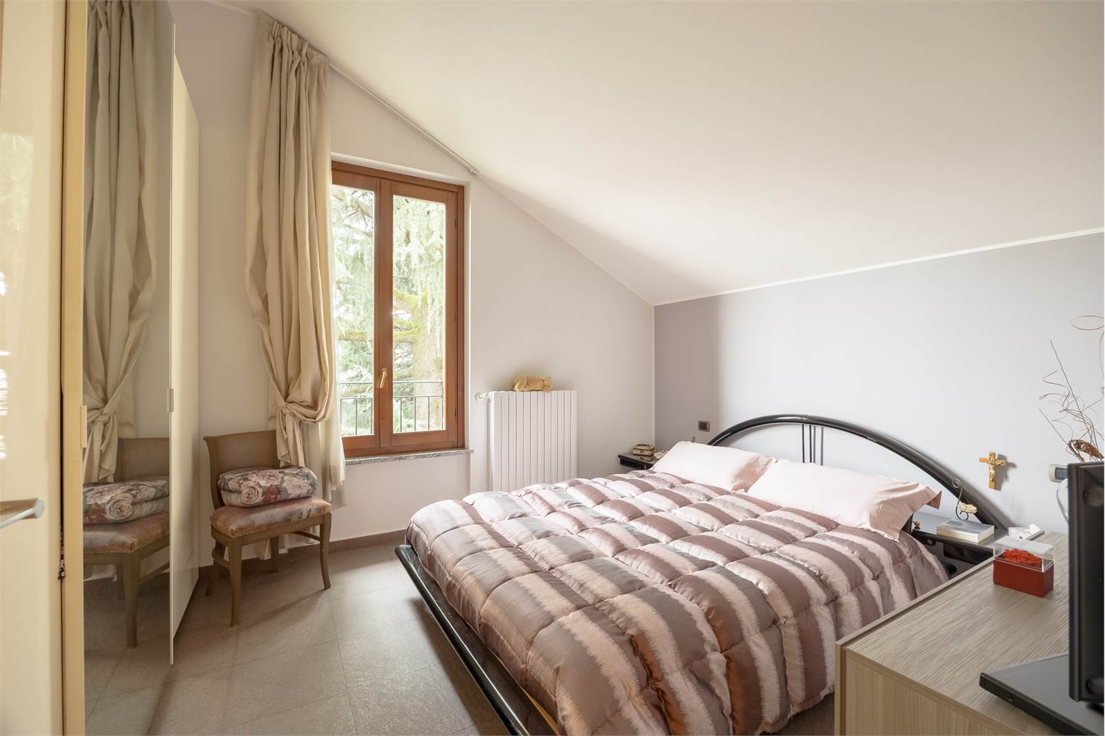 La soluzione si presenta con ottime finiture, infissi in legno con doppio vetro camera, persiane in legno, porta blindata.
