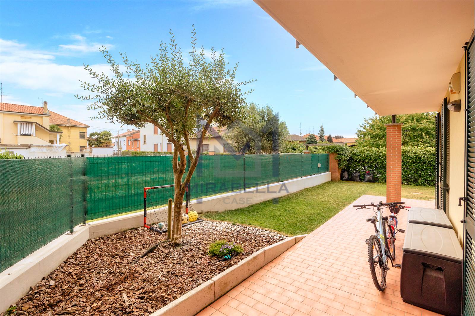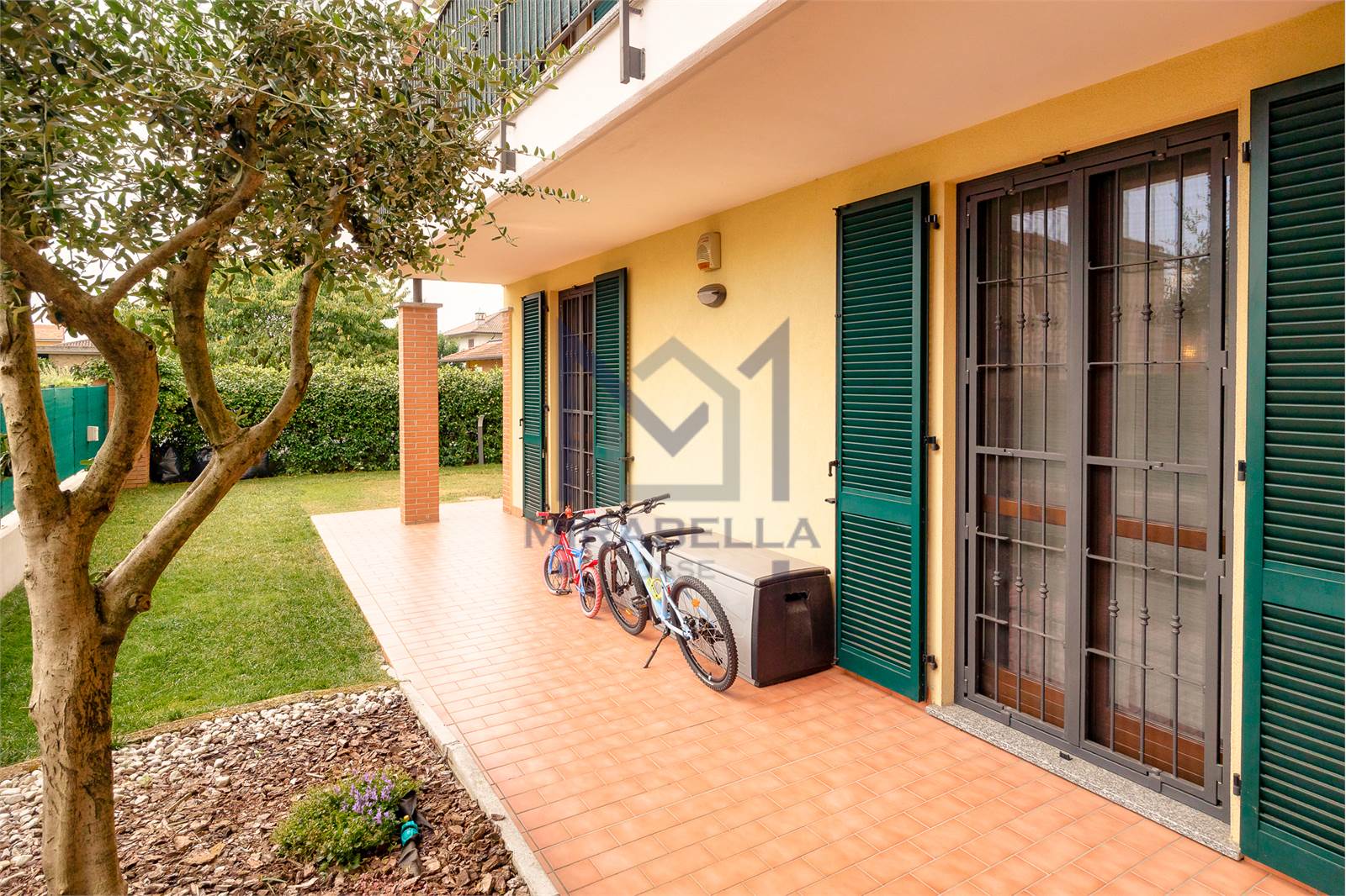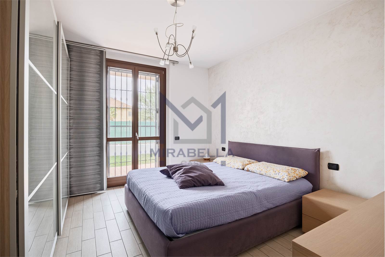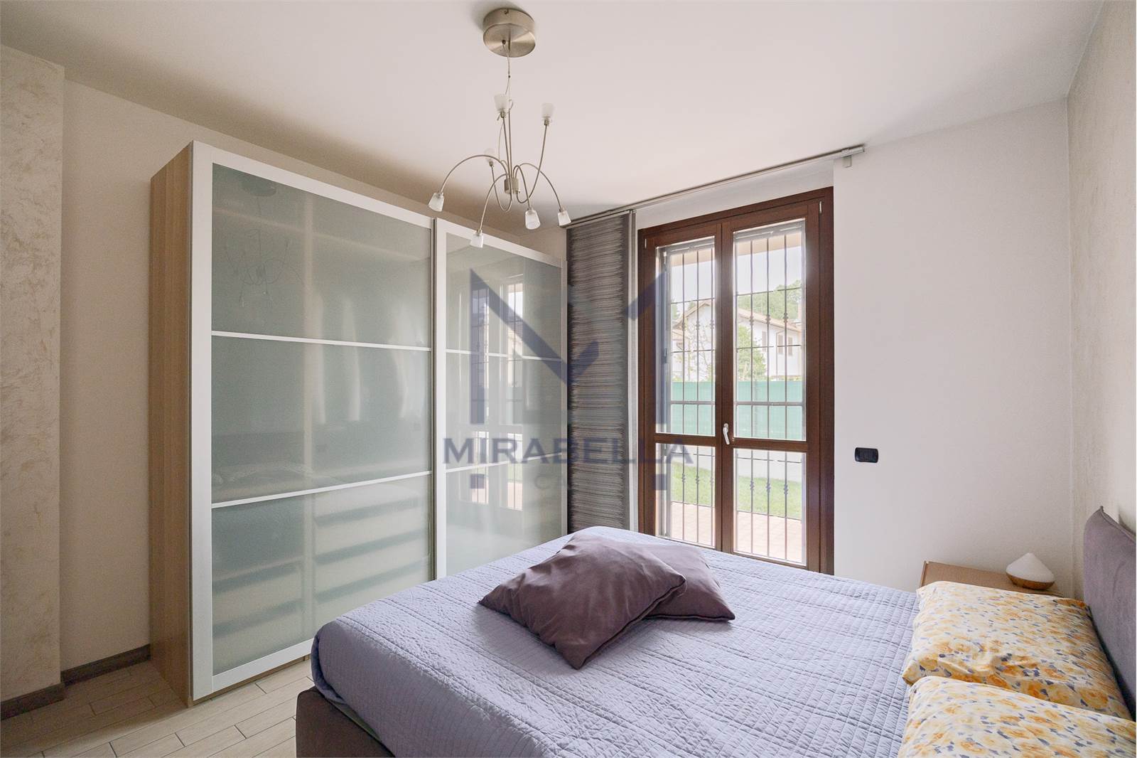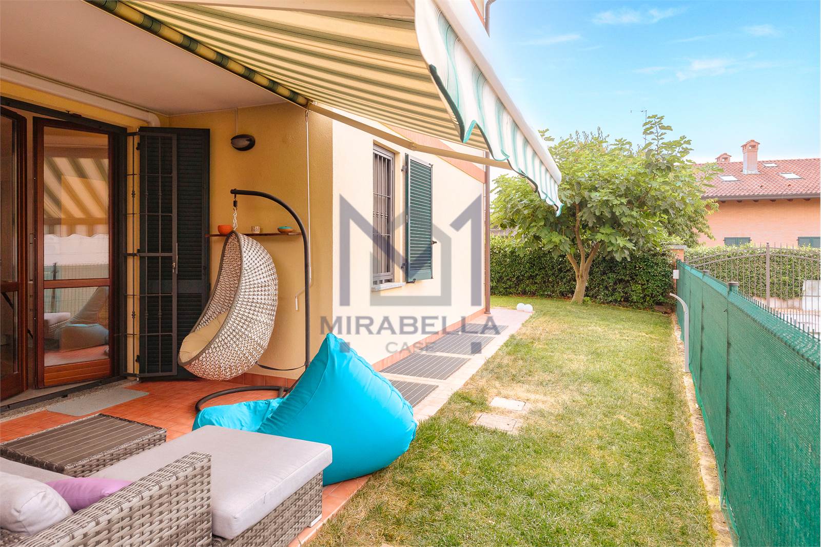 L'appartamento è posto al piano terra ed è così composto: l'ingresso si apre sulla confortevole e luminosa zona giorno (esposta est-ovest) completa di portafinestra che dà accesso allo splendido portico attrezzato con soggiorno esterno ed al giardino di proprietà che abbraccia l'immobile sui 3 lati.