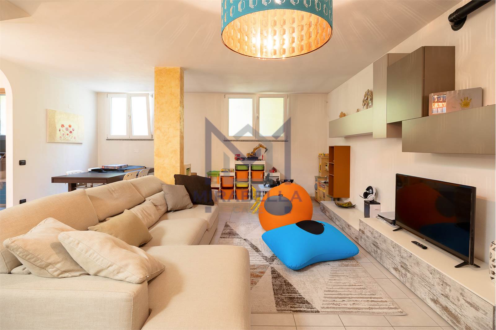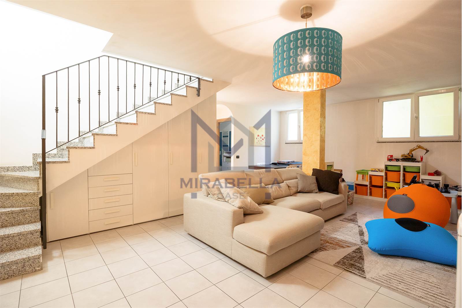 Attraverso la scala interna si accede alla bellissima e luminosissima taverna - completa anch'essa di riscaldamento a pavimento - (grazie alle bocche di lupo) caratterizzata da un'ampia zona living, un secondo bagno finestrato completo di vasca da bagno, un comodo ripostiglio attrezzato a lavanderia ed ulteriore locale jolly da usare come camera per gli ospiti o come studio/palestra privata.
